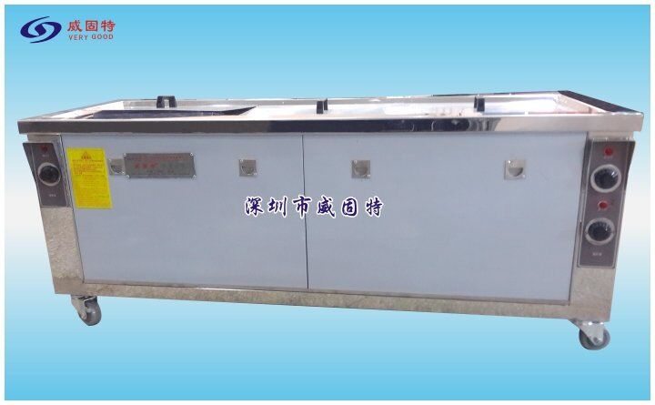 威固特4018F手動(dòng)膠塞超聲波清洗機(jī)威固特4018F手動(dòng)膠塞超聲波清洗機(jī)的清洗過(guò)程是由人員控制的,設(shè)備清洗主線由1個(gè)超聲波洗劑槽、1個(gè)超聲波純水漂洗槽、1個(gè)鼓泡漂洗槽、1個(gè)離心熱風(fēng)烘干槽組成的。